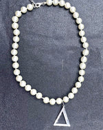 Are you looking for a necklace that makes a statement? Look no further than this 10mm glass pearl triangle necklace.