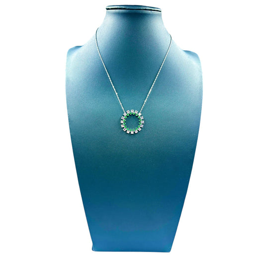 Pink and Green Circle CZ Diamond Necklace